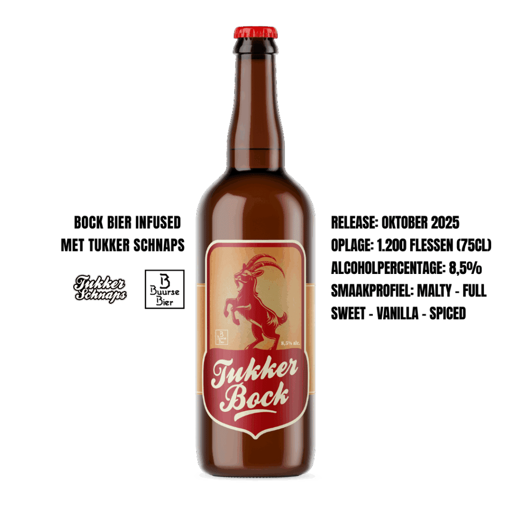 In samenwerking met Buurse Bier hebben we een bockbier gemaakt, infused met Tukker Schnaps! Het resultaat? Een geslaagd bockbier met een volle moutbasis, vleugje vanille en subtiele kruidigheid.